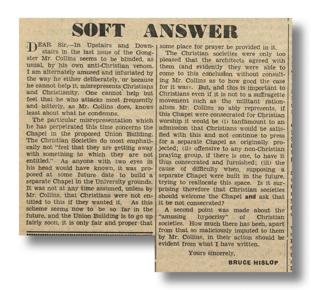 Article from the University of Nottingham student newspaper, Gongster, 13 February 1953, p.3 (UoNC os.X.Periodicals Not 5.G14.8.F48)