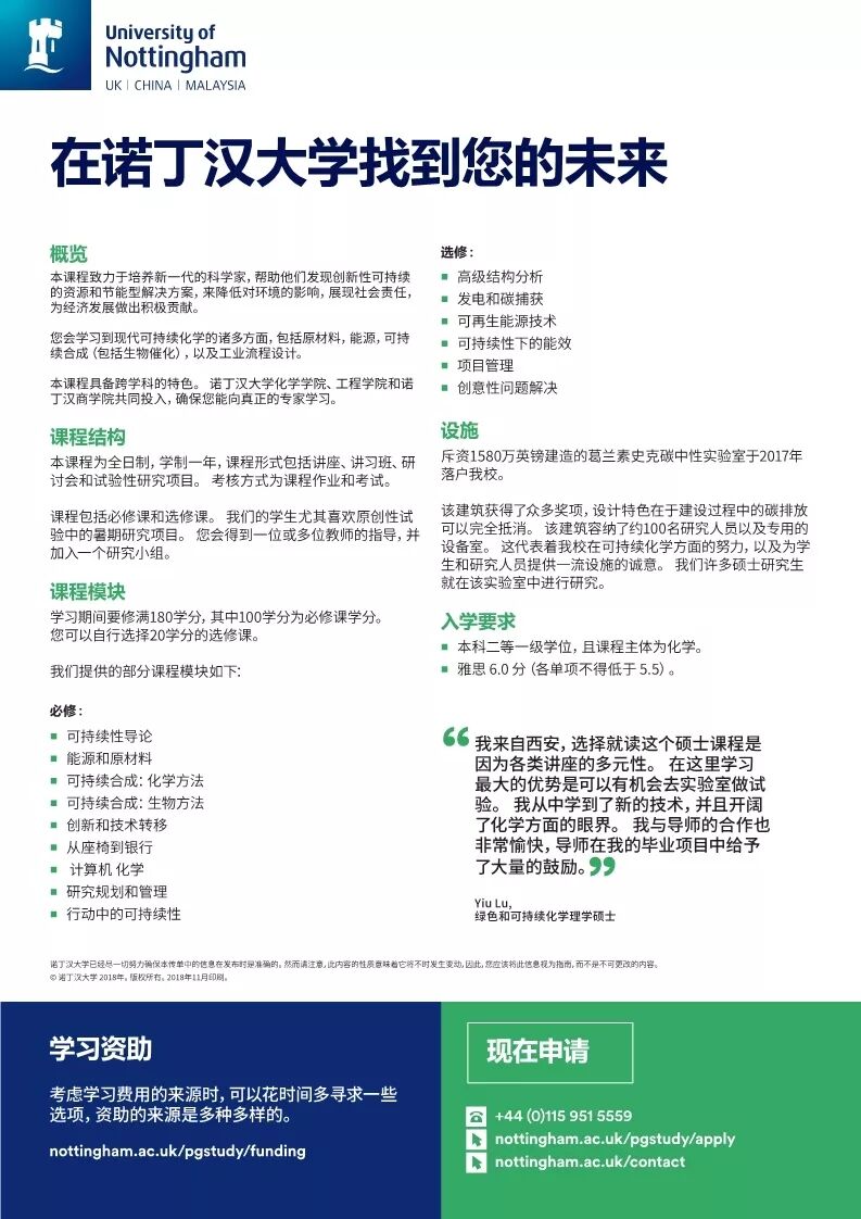 申请季 & “绿色和可持续化学硕士”课程介绍